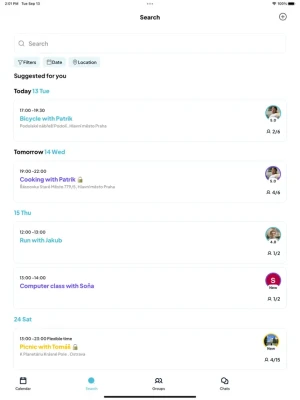 Always wanted to try bouldering but fear going alone for the first time? Just scroll through activities offered by other unalanu users looking for participants. Maybe you'll even find a local class that will finally convince you to give yoga a second chance!