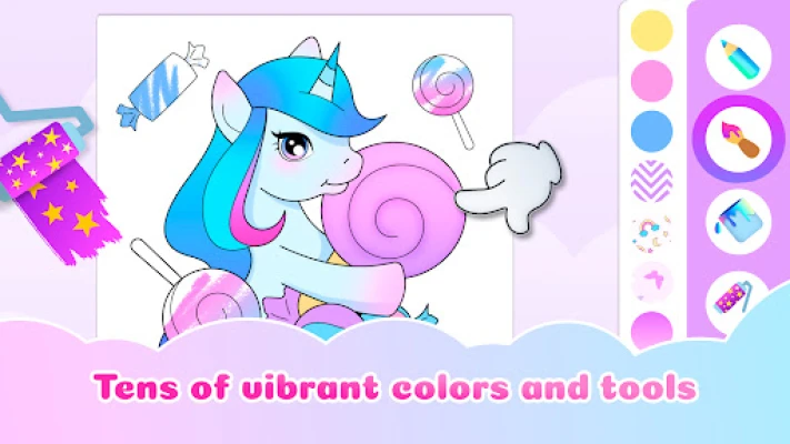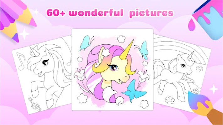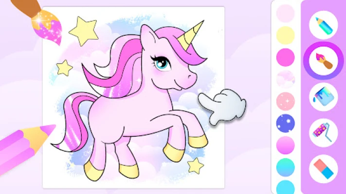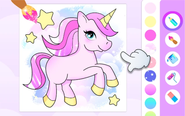 Welcome to Unicorn Coloring Book, a magical coloring game perfect for toddlers and girls! This fun and engaging game is ideal for kids aged 2-6 who love unicorns and enjoy coloring. With our baby games, your toddler can explore a world full of rainbows, stars, and cute unicorns while learning and developing important skills. Whether you’re looking for drawing games, puzzle games for kids, or educational games, this app offers a great variety of activities to let your child draw and paint to their heart's content!
