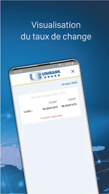 Si vous n'avez pas encore adhéré à nos services bancaires par Internet, vous pouvez toujours utiliser UniMobile gratuitement pour obtenir les taux de change du jour, contacter notre service à la clientèle ou localiser un point de service le plus proche de vous : nos ATMs, succursales, kiosques et Agents autorisés y sont répertoriés.
