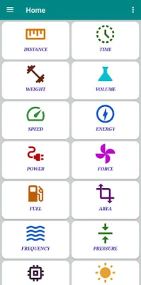 Available unit conversions in Unit Converter... -> Distance -> Time -> Weight -> Volume -> Speed -> Energy -> Power -> Force -> Fuel -> Area -> Frequency -> Pressure -> Digital Storage -> Temperature
