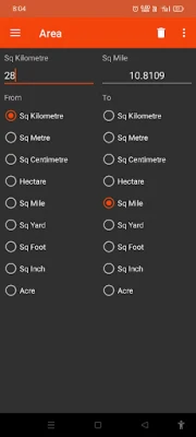 - Area: square inch, square foot, square kilometer, acre, hectare and more…