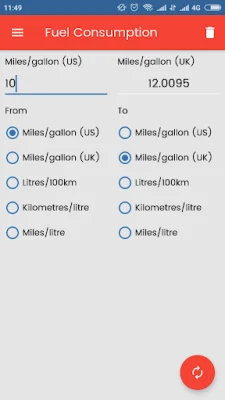 Available unit conversions include: