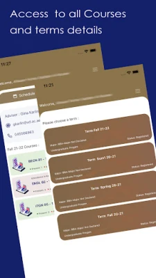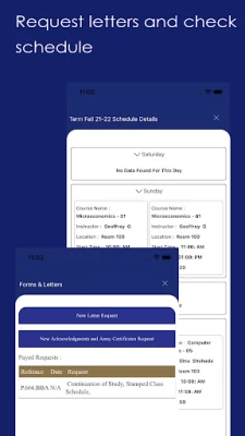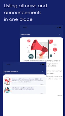 using this app you will be able to check all your courses and terms details, schedule, exams, grades and all other university details and services so you will be able to check all documents and request for a letter and pay online.
