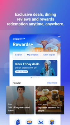 Rewards+ – Enjoy Singapore's newest and biggest rewards programme on the UOB TMRW app. Get personalised, exclusive deals on dining, shopping, travel and more, and track and use your cashback and rewards points.