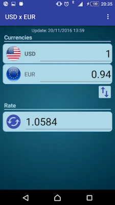 ABD Doları ila Euro arasında ve Euro ila ABD Doları arasında basit bir para birimi dönüştürücüdür.