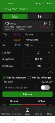 VCBS Mobile đáp ứng mọi giao dịch chứng khoán của khách hàng mọi lúc, mọi nơi, đơn giản, nhanh chóng như: - Đặt lệnh nhanh (Tích hợp lệnh điều kiện/Top dư mua bán/Lưu mật khẩu trong phiên); - Hệ thống thông tin giao dịch, khuyến nghị (Nhận biến động tài khoản/Kết quả đặt lệnh, giao dịch ngay trên app); - Cập nhật thông tin biến động thị trường nhanh chóng (chỉ số/ doanh nghiệp/ top biến động); - Nắm bắt thông tin doanh nghiệp toàn diện (Tin tức/ báo cáo phân tích/ đồ thị kỹ thuật); - Toàn bộ tiện ích chứng khoán do VCBS cung cấp (Đăng ký gói dịch vụ/ Quản lý tiền mặt cuối ngày/ Đăng ký quyền mua/ Tra cứu chứng khoán Margin…) - Giao diện darkmode chuyên nghiệp và đăng nhập thông minh (mật khẩu/vân tay/faceID).