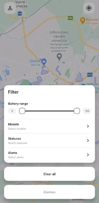 Використовуйте додаток для пошуку електросамокатів, та їх технічного обслуговування. Шукайте електросамокати на карті, а також за допомогою фільтра.