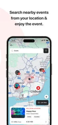 The app features an interactive map that shows you everything that's happening nearby, making it easy to plan your day or night out.