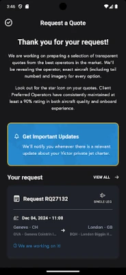 All Victor's Client Preferred Operators have maintained a minimum of 90% client rating for both aircraft and onboard experience, and are now accessible in the app.