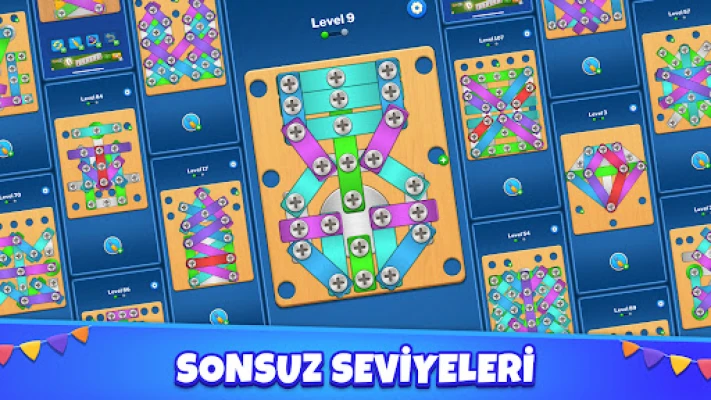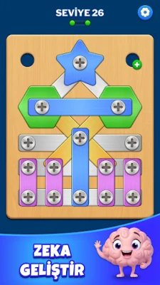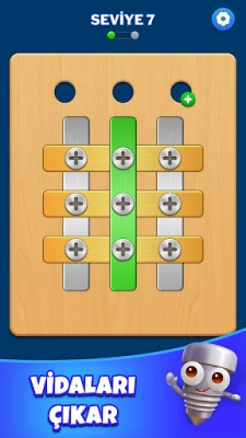 Son derece eğlenceli vida bulmacası deneyimine hoş geldiniz! Ahşap somunlar, cıvatalar ve vidalarla dolu bu renkli dünyada, mantığınız ve zekanız heyecan verici meydan okumalarla karşılaşacak! ⚙️🔩🪛