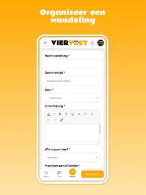 Sluit je aan bij Viervoet, de honden app waar paden kruisen, poten afdrukken achterlaten en vriendschappen ontstaan.