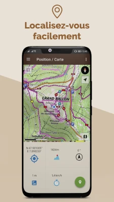 Une fois l'itinéraire sélectionné, téléchargez-le avant de partir, et lancez ensuite le suivi de rando. L’application vous guidera sur le tracé même hors-ligne. Vous verrez votre position et votre progression en temps réel sur la carte. En cas d’erreur, une alerte d’éloignement vous prévient.