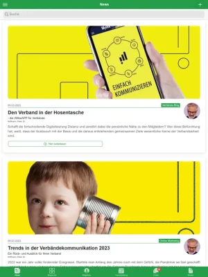 Organisieren Sie Ihr Verbandsleben vollumfänglich digital: Kommunikation von Neuigkeiten und Mitgliederzeitschriften, Verwaltung aller Mitgliederdaten, Erstellung von Projektgruppen, Organisation von Veranstaltungen mit Zu- und Absagen, Einzel-, Gruppen und Organisations-Chat, Bereitstellung von Dokumenten, öffentliche Fotopinnwand und vieles mehr...Verbinden Sie Ihre Mitglieder digital und fördern Sie die Kommunikation untereinander. Erleichtern Sie die Arbeit des Vorstands bei der Organisation Ihres Verbands.