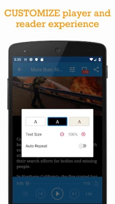 * Transcript tracking: the audio transcripts are highlighted and auto scrolled to help you focus on listening