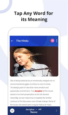 3) Tap Any Word for Meaning: - If you stuck while reading, just tap any word for meaning in your preference languages like Hindi, Bengali, Gujarati, Kannada, Malayalam, Marathi, Punjabi, Tamil, Telugu, Urdu.