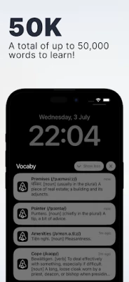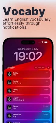 Vocaby is a simple app that helps you learn English vocabulary effortlessly through notifications. Each notification introduces a new word.