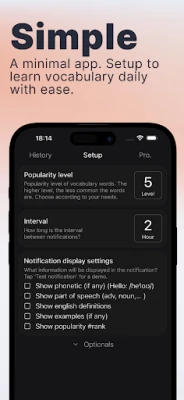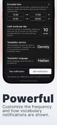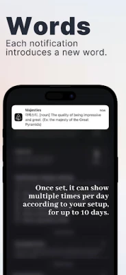 - Customize the frequency and how vocabulary notifications are shown. Once set, it can show multiple times per day according to your setup, for up to 10 days.