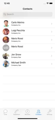 - vedere quando i tuoi contatti aziendali sono disponibili, - inviare e ricevere messaggi istantanei attraverso il servizio integrato di messaggistica (Chat), - utilizzare la rubrica locale e quella aziendale integrata nel centralino senza doverla scaricare sul dispositivo - effettuare e ricevere chiamate VoIP, sia audio sia video - consultare il registro chiamate