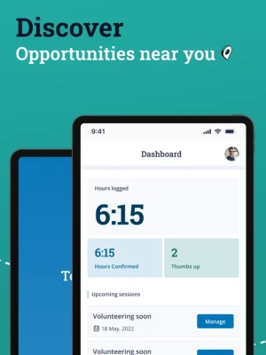 Use the app to quickly find opportunities, join up and join in. You can log your hours and thumbs up feedback and progress through our volunteer award system.