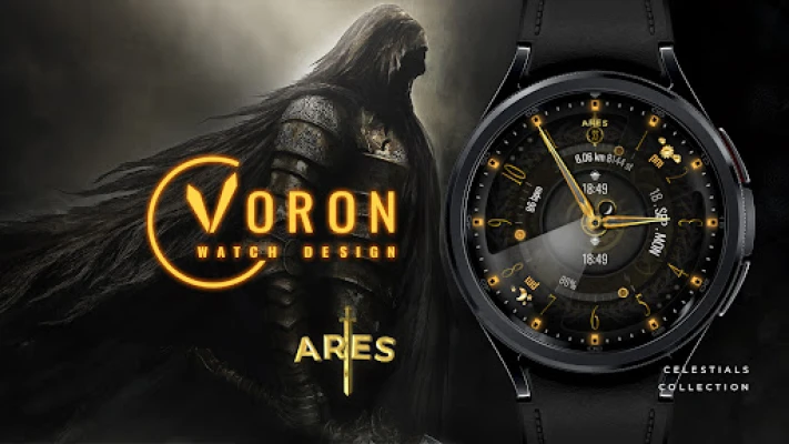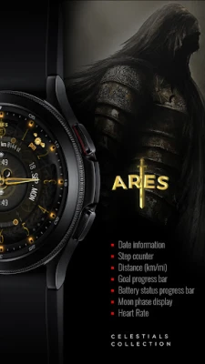 Ares - the patron of war will remind you of the time on a convenient analog watch face. Let Ares be on the side of good and drink the blood of our enemies. Customize the Ares analog watch face to your liking.