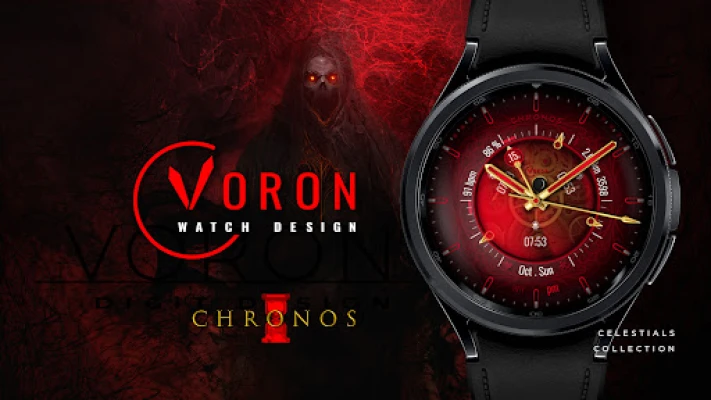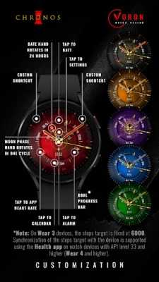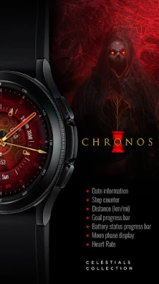 Chronos – the lord of time will remind you that your time is not endless. Do not forget to control the time on your smart watch on the convenient analog Chronos watch face. And a large selection of custom elements of the Chronos analog watch face will allow everyone to customize their own unique watch. Time can’t be stopped… tick… tock