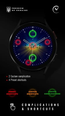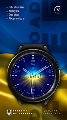 The "Freedom of Ukraine" free analog watch face is a heartfelt tribute to the spirit of Ukraine's independence and resilience. This watch face is a meaningful accessory for those who wish to carry the spirit of Ukraine's freedom with them every day.