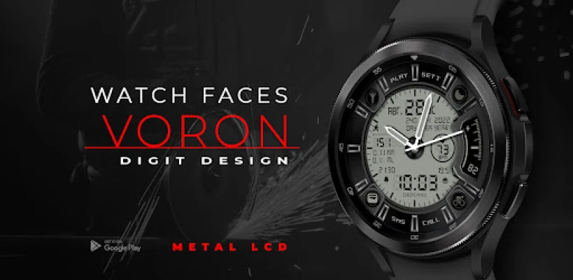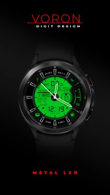 Informative watch face with a metallic character. Featuring a sleek and minimalist design, the "Metal-LCD" watch face showcases a sophisticated digital display reminiscent of retro technology. The metallic backdrop adds an industrial edge, while the crisp and bold digital numerals provide a clear view of the time, date, and other essential information.