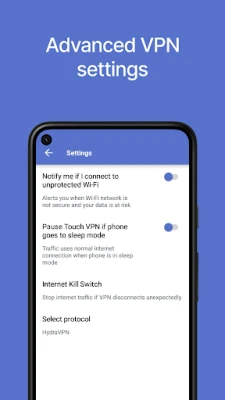 ⇨ Protect Your Data from Hackers. When you’re connected to a public Wi-Fi Hotspot, your name, passwords, and personal information can be easily compromised. VPN in Touch encrypts your data and provides you with banking-level security for the best protection.
