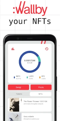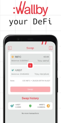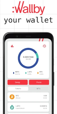 Wallby is your all-in-one wallet and superapp for Bitcoin and its ever-growing ecosystem: manage bitcoin on-chain, browse your NFT collection on Liquid, swap tokens on Rootstock and much more, all in one place and with one backup.