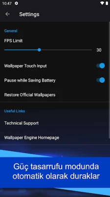 • Videoları, GIF'leri ve etkileşimli 2D / 3D sahneleri duvar kağıdı olarak destekler. • Masaüstü kütüphanenizi telefonunuza aktarmak için Windows'ta Wallpaper Engine'e bağlanın. • Duvar kağıtlarınızın görünümünü ve tarzını özelleştirmenize olanak sağlar. • Duvar kağıtlarınızı düzenli aralıklarla veya günün saatine bağlı olarak otomatik olarak değiştiren bir oynatma listesi oluşturabilirsiniz. • Telefonunuzda güç tasarrufu modu etkinleştirildiğinde duvar kağıtları otomatik olarak duraklatılır. • Uygulama tamamen reklamsızdır ve etkinliklerinizi de takip etmez.