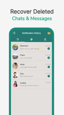 ✔️ Recover deleted messages app recovers recently deleted messages & media files like images, video, audio, and gifs.