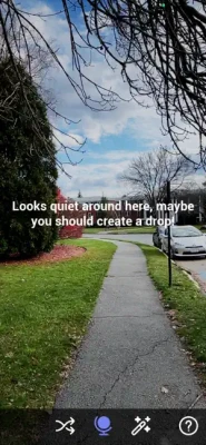 - "Shuffle" allows you to see random drops created by other users, no matter where they were created - "Discover" allows you to find a drop in the world close to you (within 5km) and walk toward it - "Create" allows you to create your own drops in the world for others to see