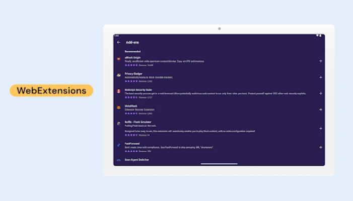 • Browse and install from the entire Mozilla Add-ons store