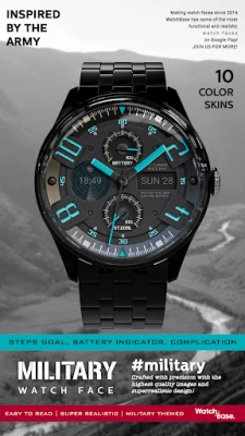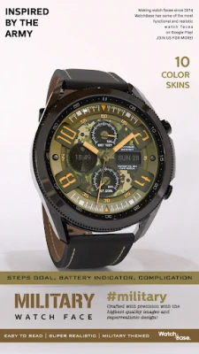 A new unique blend between design and functionality, a military themed SUPER realistic analog watch face for Wear OS.
