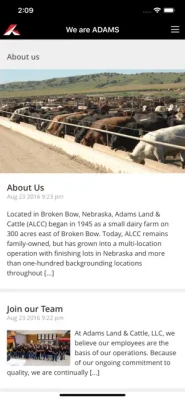 The We are ADAMS App brings important news, upcoming events and other updates related to Adams Land and Cattle to our business partners, customers, employees and their families. With the We are ADAMS App on your phone you receive those updates on the go.