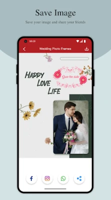 - Store / Share special Wedding photo frame with your friends or family members via social media.