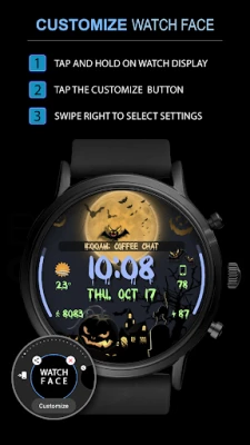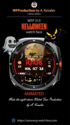 The WFP 315 Halloween watch face is not only stylish, but also very functional. It provides detailed weather, health, and activity data, and offers a wide range of customization options for maximum convenience and personalization.