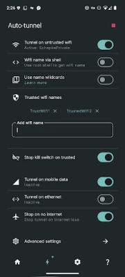 - Wi-Fi SSID'ye, ethernet'e veya mobil veriye dayalı VPN'ye otomatik bağlanma