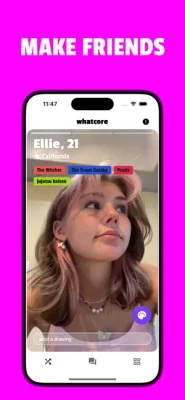 3 Things you need to know about whatcore1) swipe to make new friends2) or draw & send a drawing to stand out!3) whatcore is free to download and use, but you can also subscribe to premium to get the most from whatcore.