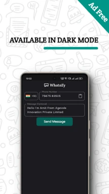 1. Download the Whatsify app from the app store and install it on your device. 2. Upon launching, grant necessary permissions and set your preferred mode – Dark or Light. 3. Ensure your internet connection is active, as Whatsify relies on it for smooth communication. 4. Type the desired WhatsApp number directly into the app's search bar, and you're good to go. 5. Send messages without the hassle of saving contacts and experience seamless direct messaging.