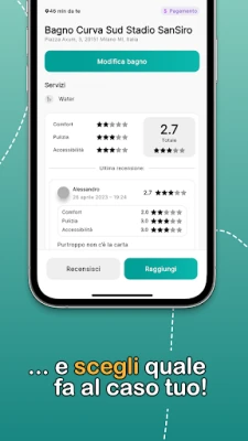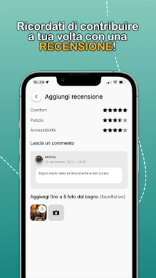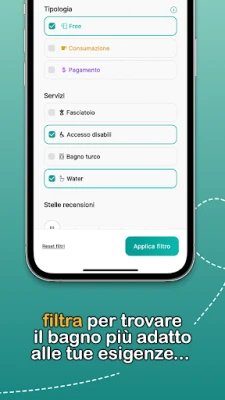 “Where is the toilet” è un applicazione che ti permette di trovare i bagni più vicini a te suddivisi tra GRATUITI, a PAGAMENTO o SU CONSUMAZIONE, e di lasciare una recensione dando un voto a questo tuo momento di pace e benessere, aiutando così anche eventuali prossimi utenti.