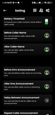 Options: * Who's Caller Name Announcer with Caller Name. * Caller Announcer to announce Caller Name. * Disable/Enable Calls Announcer on Silent Mode. * Disable/Enable Calls Announcer on Vibrate Mode.