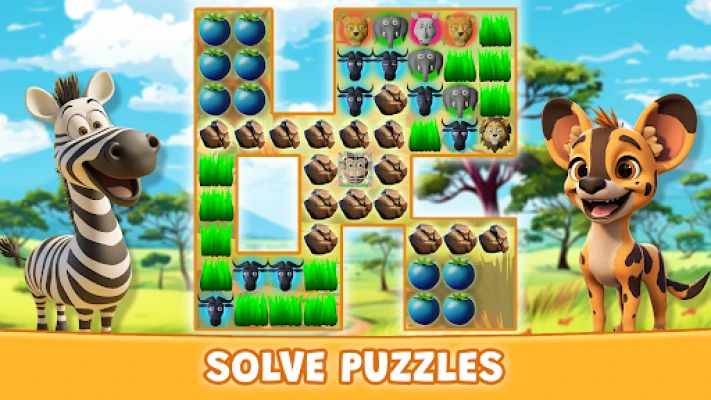 Explore the African savanna in this fun and challenging puzzle adventure, where every match brings you closer to discovering incredible wildlife.