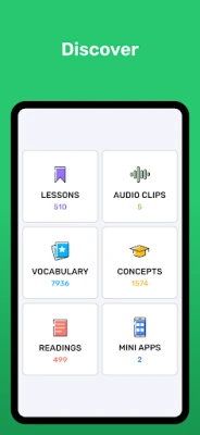 Lesson structure: Concepts are introduced progressively throughout the course. Only concepts that are explained in the course are used to create the content (sentences, exercises or readings).
