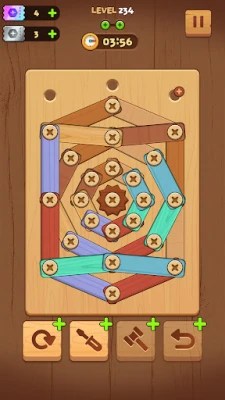 Wood Bolt Party: Screw Puzzle, rahatlatıcı ama zorlayıcı yapısıyla zihnini çalıştırırken sınırsız eğlence sunar!