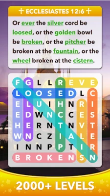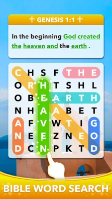 HOW TO PLAY : - Swipe up, down, left, right or diagonally to search for given words from bible verse - Each puzzle is a bible verse