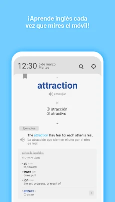 WordBit proporciona contenido en un tamaño perfecto y adecuado para la pantalla de bloqueo y a partir de ahora el aprendizaje solo tomará un instante. ¡Así que no hay necesidad de dejar de hacer tus cosas!
