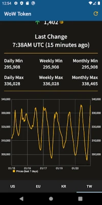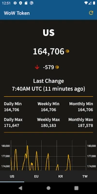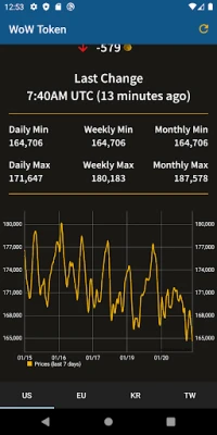 WoW Token is an app to view current and historical World of Warcraft token prices for different regions. It has the most up-to-date price, as well as daily, weekly and monthly min/max. It currently displays data for the US, EU, KR and TW regions.