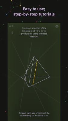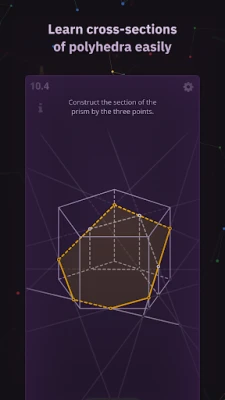 XSection is a trainer of solid geometry problem solving. It teaches you how to perceive 2D representation of polyhedra, lines, and planes from 3D Euclidean space. All the problems can be solved without complex calculations. The app contains the required theory facts and explanations. If you forgot a definition, you can instantly find it in the app’s glossary.