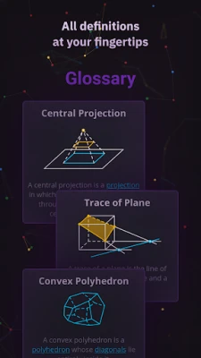 * Built-in glossary with geometric terms